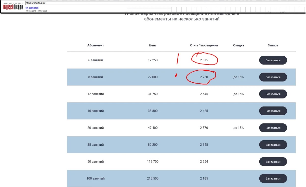 При том, что на сайте tridelfina.ru была указана совершенно другая стоимость одного занятия с грудничком: 2.875р.